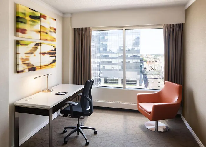 Die Unterkunft bietet 307 Zimmer mit einem Schreibtisch, einem Flachbildfernseher mit Satellitenkanälen und einer Klimaanlage für einen angenehmen Aufenthalt in Edmonton.